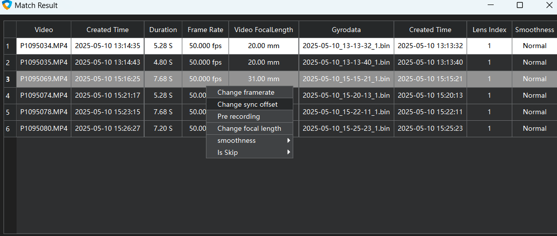 Select the corresponding gyroscope file (recorded simultaneously with the sync video)
